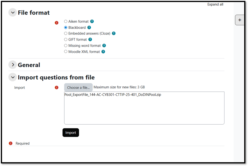 3.Click on the name of your new test again and ensure that your Edit Mode is on, click the Question Bank tab. Then from the box that says Questions, select Import.